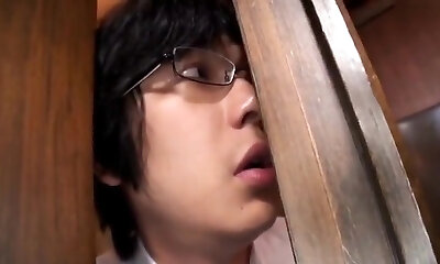 Glory hole gay threesome with a nerdy teen and beefy mature fellows
