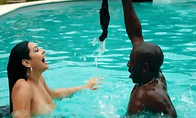 Outstanding slut, Aidra Fox is fucking a crazy, black guy, while next to the pool