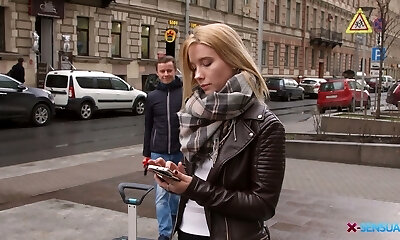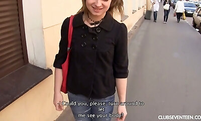 Dude picks up naughty pigtailed teen in short skirt Lucy Female and fucks her tight cunny