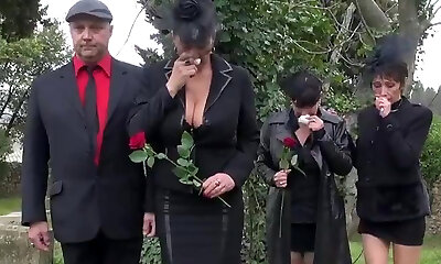 Two hot mature ladies fuck one bony guy with a huge dick