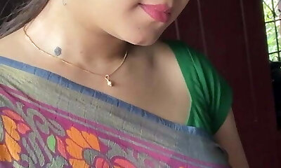 glorious Indian Aunty Sexy Green Saree